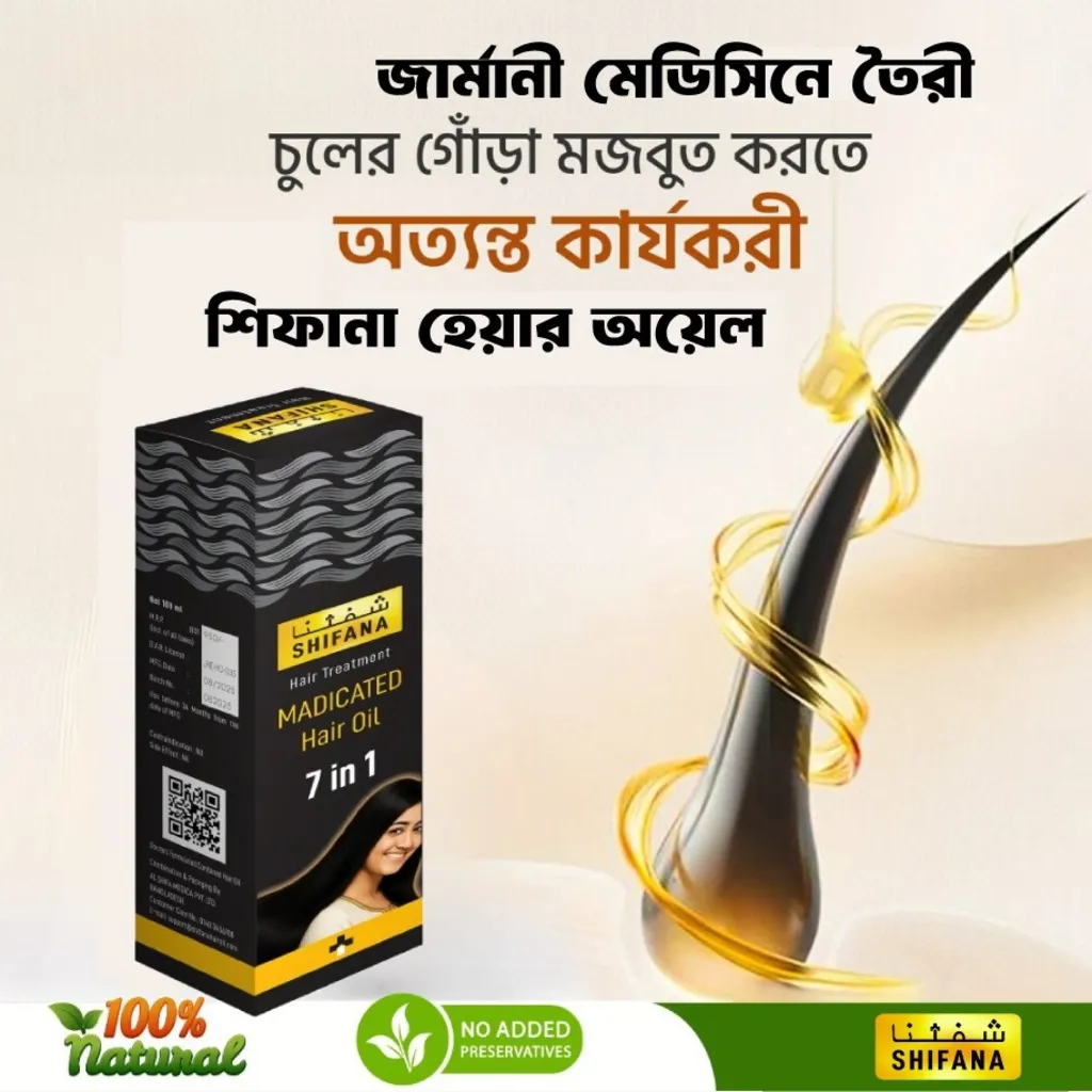 চুল পড়া বন্ধ, গোড়া শক্ত, নতুন চুল দ্রুত গজানো— শতভাগ প্রাকৃতিক সমাধানের বিশ্বস্ত নাম SHIFANA হেয়ার অয়েল।